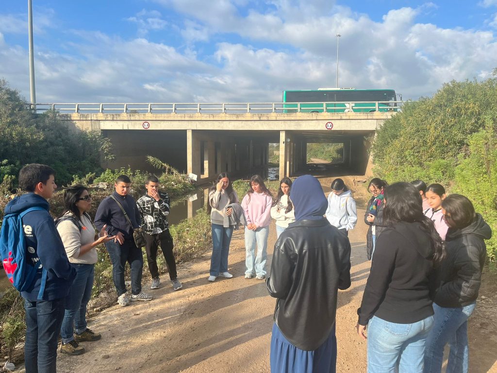 הסיור במקום החל בעבודה קבוצתית חקרנית בשטח, במסגרתה למדו על הייחודיות של ואדי אבו נאר לעומת נחלים אחרים שבהם ביקרו בעבר. התלמידים דיווחו על ריח חזק של זיהום, הצטברות משמעותית של פסולת, קרבה לאדמות חקלאיות פרטיות, ותחושה כללית של מרחב “לחוץ” החי בין יישובים. התלמידים זיהו כי מדובר בוואדי הנתון לעומסים סביבתיים וחברתיים כאחד.